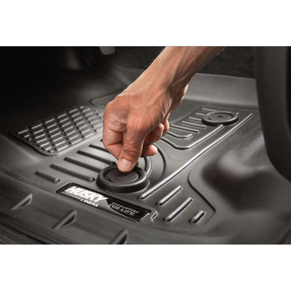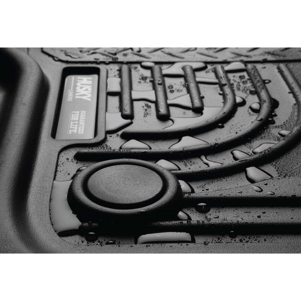 Husky Liners brand WeatherBeater Floor Liners offer a fresh appealing design complimenting today's current model cars, trucks, and SUV's interior styling, with proven functionality and protection. This new design is custom-fit and features containment walls to help keep messes away from your shoes and patented Nibs to help keep your liners from shifting. In addition, the WeatherBeater liners use key elements of your vehicle's interior to give your floor liner a customized look and feel. An additional Form-fit Edge at the door threshold allows for easier entry and exit. These liners are designed using the latest in laser scanning technology to fit the complex surfaces of your specific vehicle's floorboard. The liners are made with an exclusive elastomeric material that withstands most harmful chemicals including oil, gas, and battery acid and comes in black, grey, and tan. You can feel good about purchasing a Husky WeatherBeater Liner as each and every liner is designed and manufactured in the United States and is backed by a Lifetime guarantee against cracking and breaking.