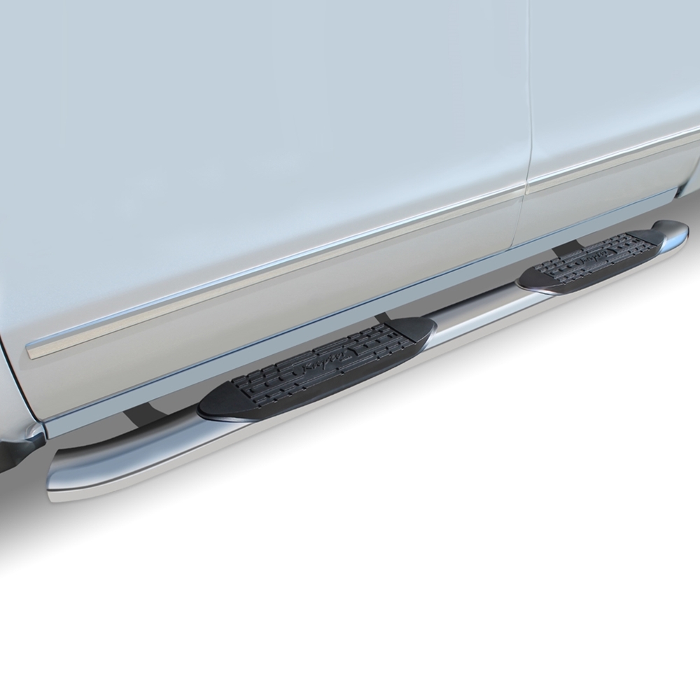 Raptor Series offers its curved 5 inch OE Style Stainless Steel Oval Step Bars! This step features seamless welded end caps and 30 degree OE styled bends on each end. This product is backed by a Limited Lifetime Warranty.
