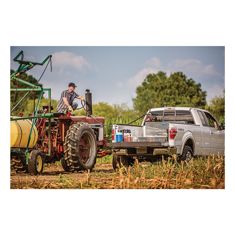 UWS transfer tanks offer the perfect solution for transporting chemicals, solutions and other non-flammable liquids to your next jobsite. Each tank features corrosion-resistant aluminum construction, a commercial-grade ventilation cap and an optimal fit and capacity to suit your truck and lifestyle. The heavy-duty .125" thick aluminum alloy construction provides the tank with structural strength, while keeping it lightweight and resilient to corrosion. The commercial-grade vented cap allows for proper ventilation of the liquid contents, and the tank is also equipped with commercial-grade mounting flanges for maximum strength in the truck bed. UWS transfer tanks are available in multiple sizes to accommodate any job. Like all UWS truck tool boxes, this product is proudly assembled right here in the USA for style and long-lasting dependability. NOTE: This tank is DOT-compliant for transporting Class 3 combustible fuels only, such as diesel.