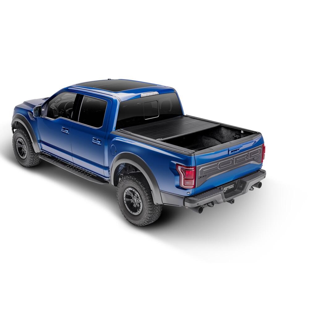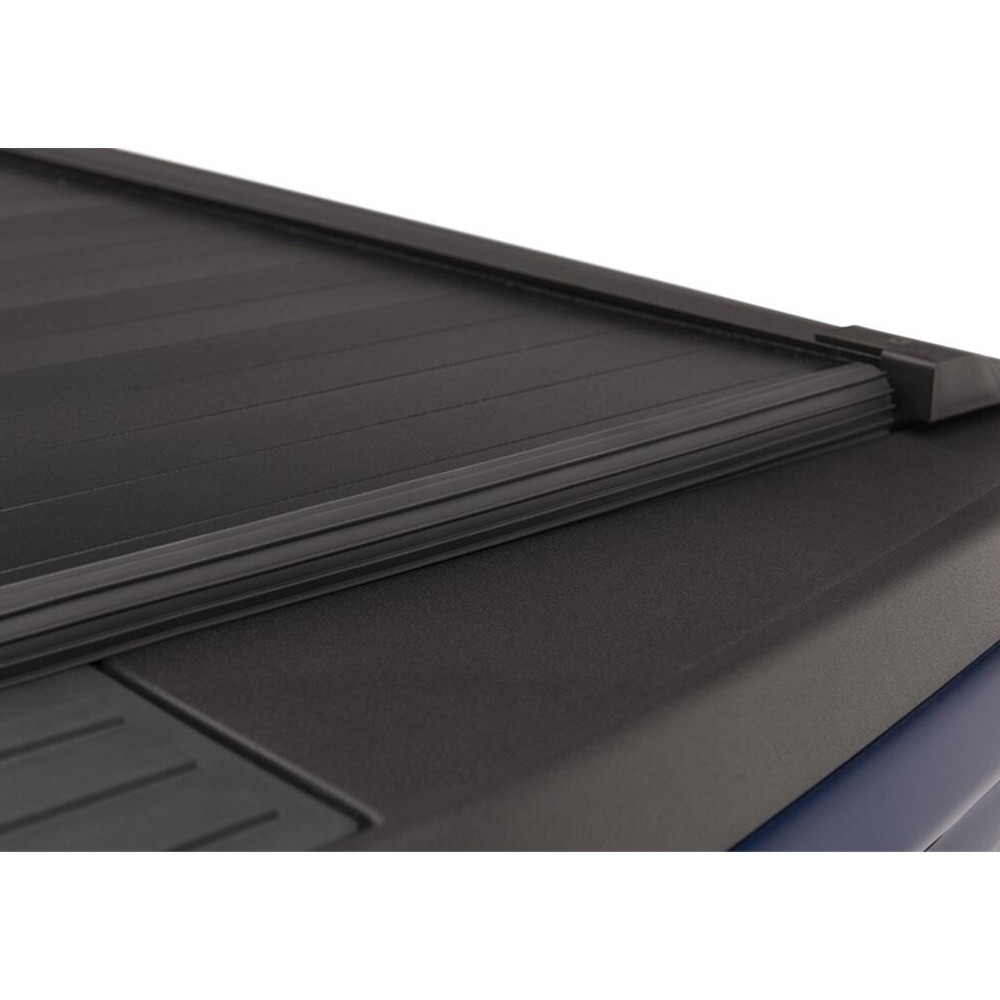 The Retrax IX is a flush-mounted retractable tonneau cover constructed of durable aluminum slats linked by a strong elastomer hinge, helping to eliminate the opportunity for water and debris to enter your truck bed. When combined with the UV-resistant matte finish powder coat, the cover helps keep your truck bed and cargo protected and secure in the roughest of conditions. The Retrax IX's convenient release handle allows the cover to roll into a custom spiral canister at the front of the bed, protecting the cover and reducing wear and tear. Sealed roller bearings inside the aluminum rails deliver smooth, frictionless operation with no binding and virtually eliminate springs and failure-prone moving parts. Retrax IX's unique, adjustable latch stops allow you to secure your cover in any three positions of your choice for the ultimate in hauling capacity and flexibility, letting you use your truck how you need to. This cover, manufactured in the U.S.A. with global materials, installs easily in just 30 minutes, and the "No-Profile" appearance is sure to keep your truck looking good and cargo secure for years to come.